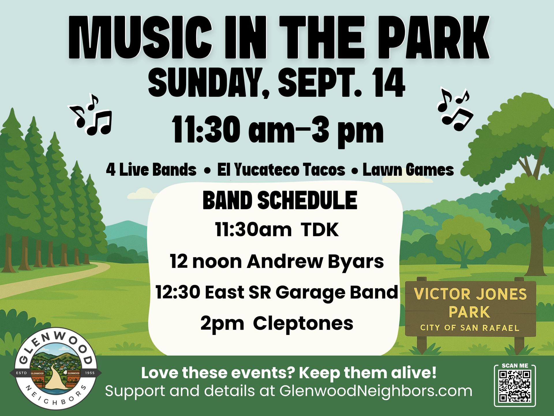 Join Glenwood Neighbors at Victor Jones Park for a fantastic day of local bands and entertainment. Bring your lawn chairs and sun shade, and make a day of it. Everyone welcome!